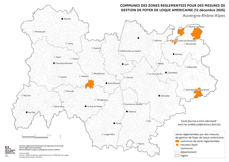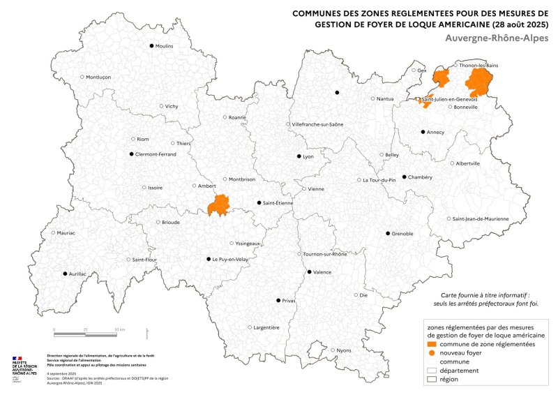 Carte régionale fournie à titre informatif. Seuls les arrêtés préfectoraux font foi.